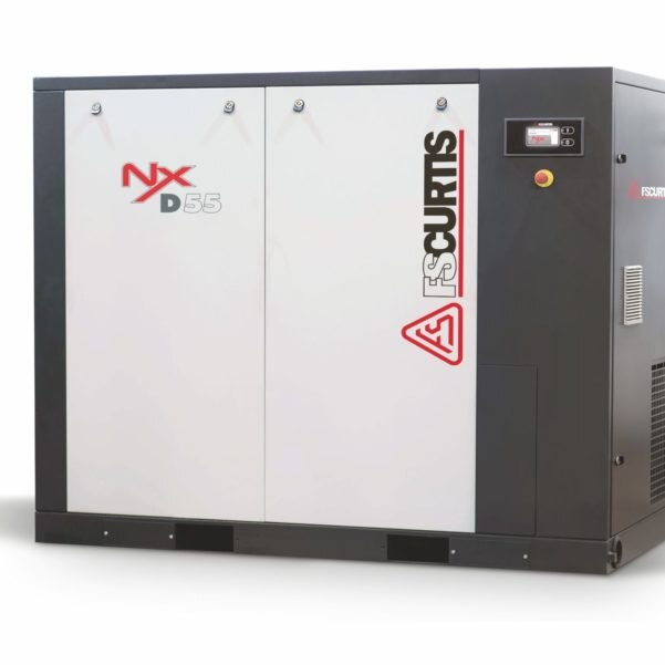 The FS Curtis NX Series Rotary Screw Air Compressors are industrial-grade compressed air systems engineered for continuous duty performance, energy efficiency, and long-term reliability. Available in both fixed speed and variable speed (VSD) configurations from 15 to 90 kW, the NX Series is designed to meet diverse plant air demand profiles. The compressors feature high-efficiency rotary screw airends optimized with precision rotor profiles to deliver stable airflow with minimal specific power consumption. Direct drive transmission ensures loss-free power transfer, reducing mechanical wear and improving operating efficiency. NX Series units are equipped with premium efficiency motors, centrifugal cooling fans, and oversized heat exchangers delivering superior thermal management. FS Curtis’ exclusive eCOOL™ cooling technology utilizes compartmentalized airflow design and optimized ventilation paths to reduce internal heat load, extending component life and improving overall reliability. Integrated oil separation systems maintain low oil carryover levels, ensuring clean compressed air output. Intelligent AIMS Plus controllers provide real-time monitoring, pressure control, maintenance alerts, and remote communication via RS485 Modbus interface. Optional DemandSmart™ energy management system with VSD technology dynamically matches compressor output with plant air consumption, significantly reducing unload losses and lifecycle operating costs. Compact enclosure design enables low noise operation, easy service access, and space-saving installation, making the NX Series ideal for automotive, engineering, FMCG, plastics, textiles, and process industries.